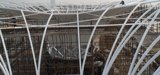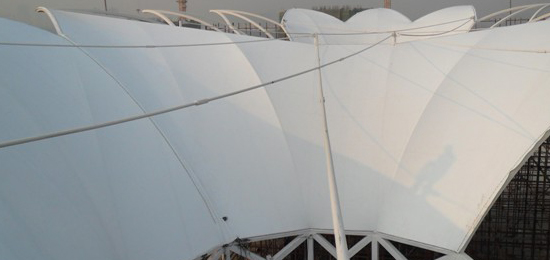 精選優(yōu)質(zhì)進(jìn)口大品牌膜結(jié)構(gòu)原材料,具有拉力強(qiáng)度高,承載力大,使用壽命長(zhǎng),每平方承載力可以達(dá)到300KG-500KG,數(shù)人站立同一位置都不會(huì)有任何變形,經(jīng)測(cè)算,可抗風(fēng)12級(jí),抗震7級(jí)以上。